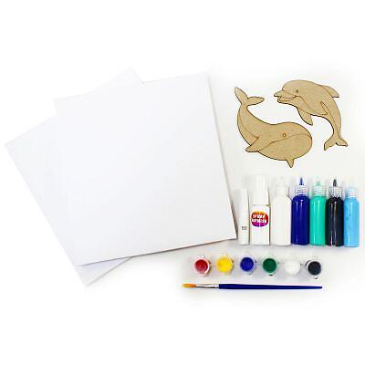 Learn to create the art of paint pouring on canvas - creatively pour and mix paints to design a multi-colour, abstract, marble-effect painting! Rotate, swirl, poke and blow on the paint as they blend together! Add Dolphin and Whale boards on top of each canvas for a cute finish. Hang them up to show off your Pour Art masterpieces. The kit has everything ready, only creativity from you is needed!